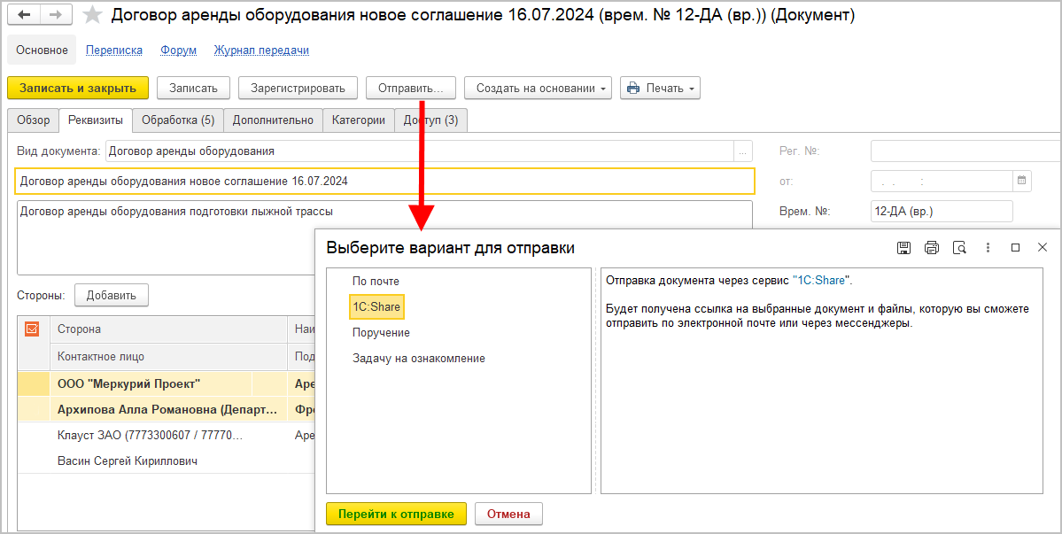 Можно сразу отправить документ, выполнив команду Отправить... – ЭДО.