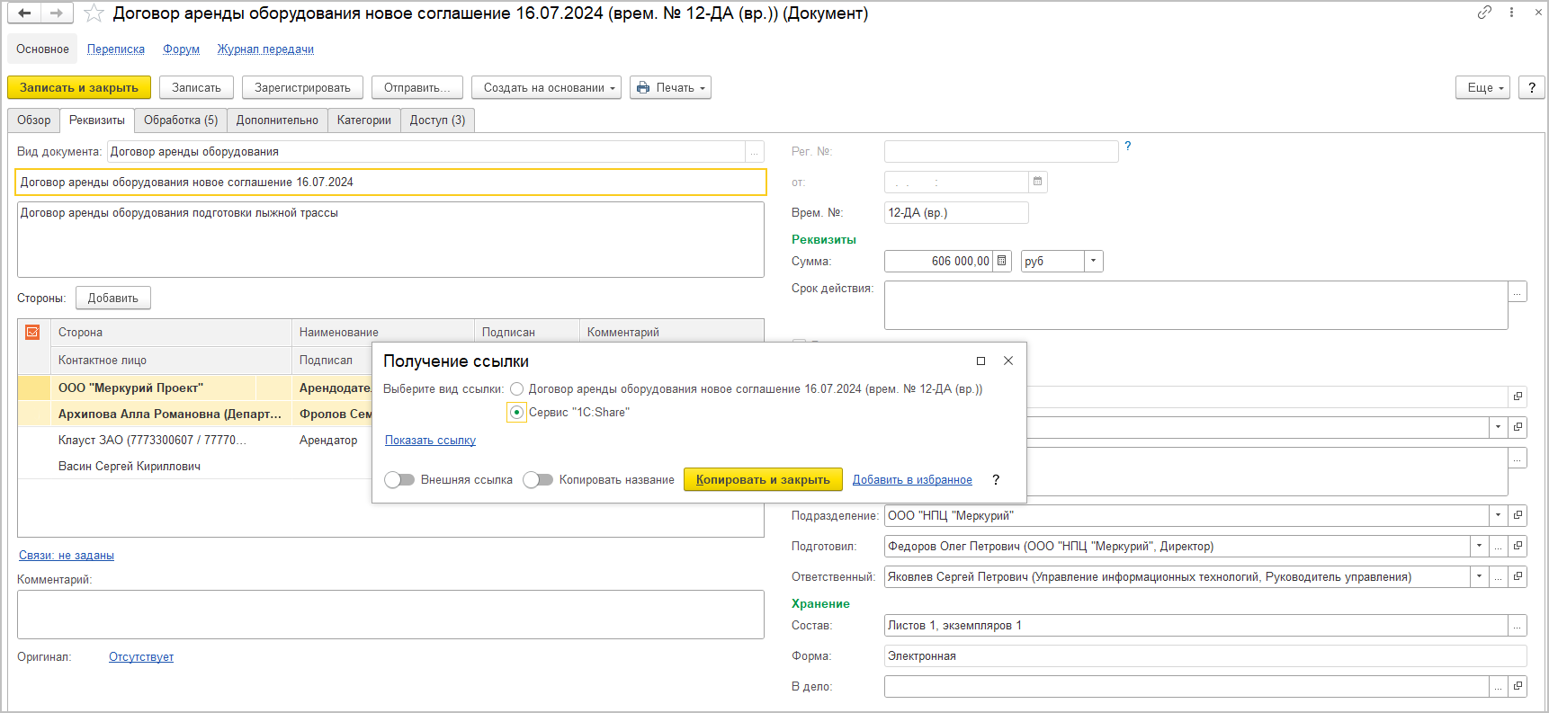■ При сохранении файлов документов 1С:Документооборота теперь можно сохранить данные связанных документов ЭДО.