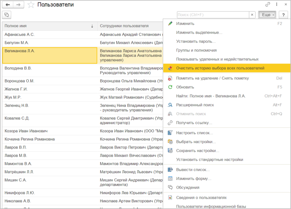 ■ Отсутствовал фильтр для удаленных и недействительных сотрудников на форме сотрудников пользователей.