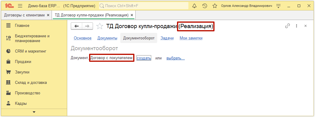 В карточке документа ЭДО можно связать его с существующим документом 1С:Документооборота с помощью гиперссылки Подобрать.