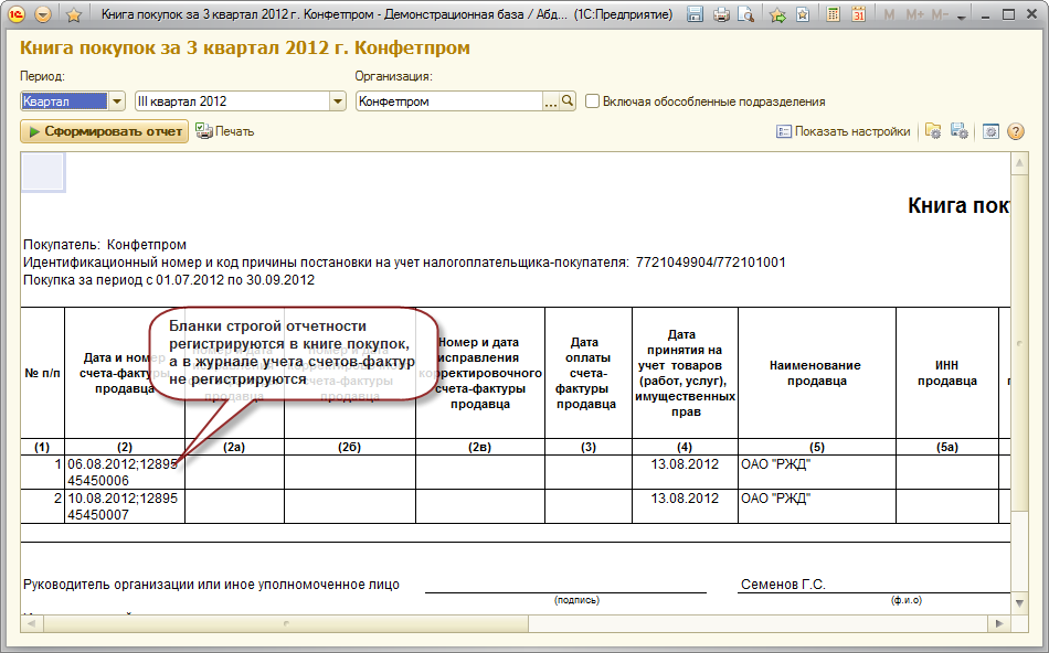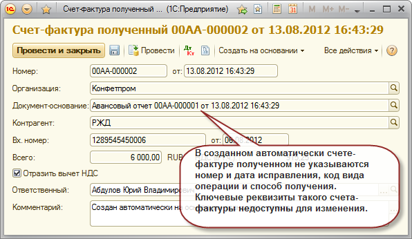 Документ "Счет-фактура полученный"