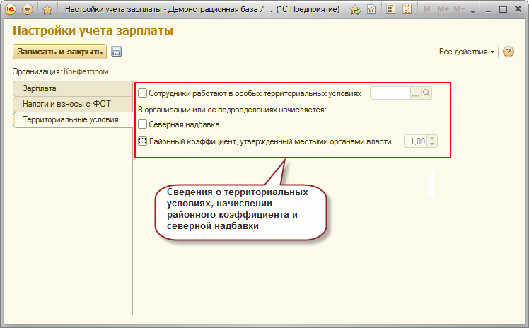 Закладка "Территориальные условия"