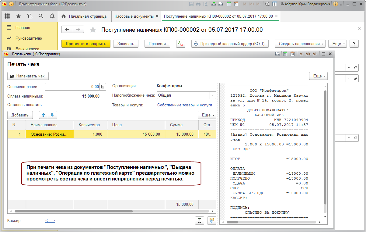 Документы "Поступление наличных", "Выдача наличных", "Операция по платежной карте"