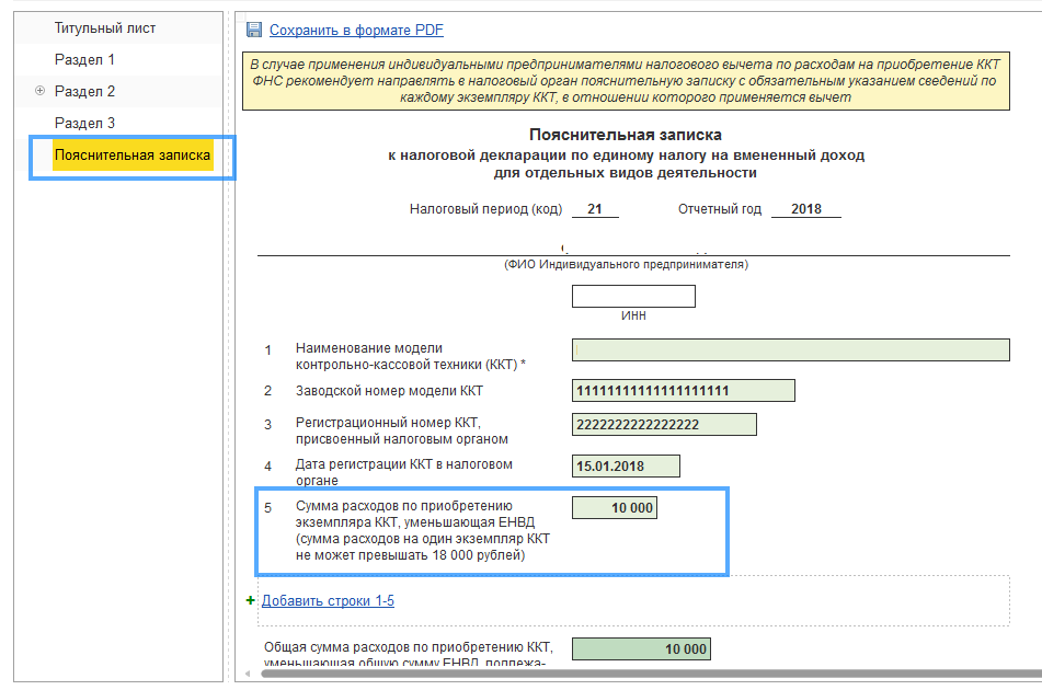 Декларация по единому налогу на вмененный доход за 1 квартал 2018 и пояснительная записка к ней заполняются автоматически по данным информационной базы в соответствии с рекомендациями в письма ФНС России от 20.02.2018 № СД-4-3/3375@.
