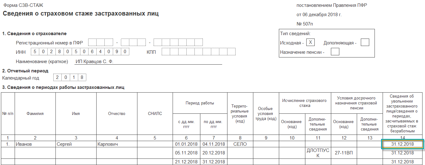 Если сотрудник уволен 31 декабря отчетного года, то в печатной форме будет указана дата увольнения.