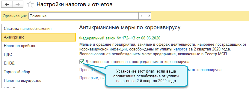 Простой интерфейс: меню "Налоги - Настройка налогов и отчетов".