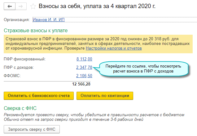 Проверка суммы взноса в ПФР с доходов за 2020 год: