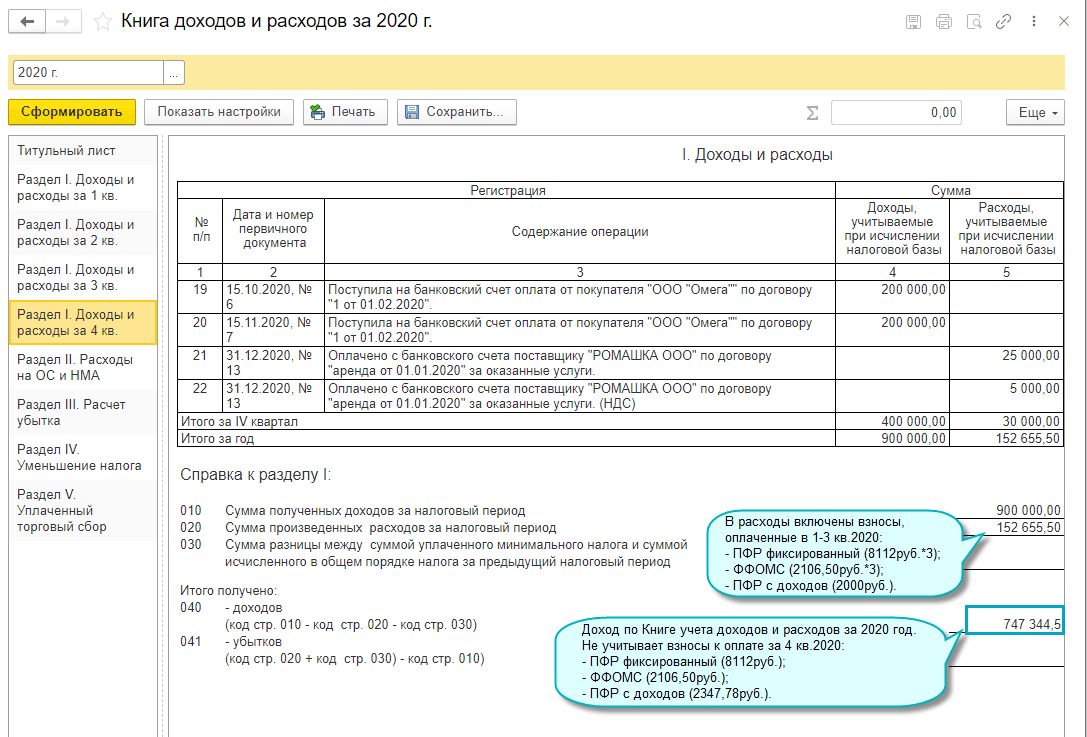 - сумма дохода с учетом оплаты всех взносов до конца 4 кв.2020 = 747 344,50руб. - 8 112руб. - 2 106,50руб. - 2 347,78руб. = 734 778,22руб.