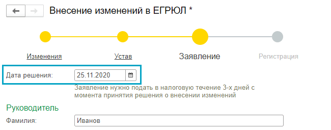 С 25.11.2020 добавлена новая форма Р13014 заявления о регистрации изменений в ЕГРЮЛ. Она заменяет две старых Р13001 и Р14001 (Приказ ФНС России от 31.08.2020 №ЕД-7-14/617@).