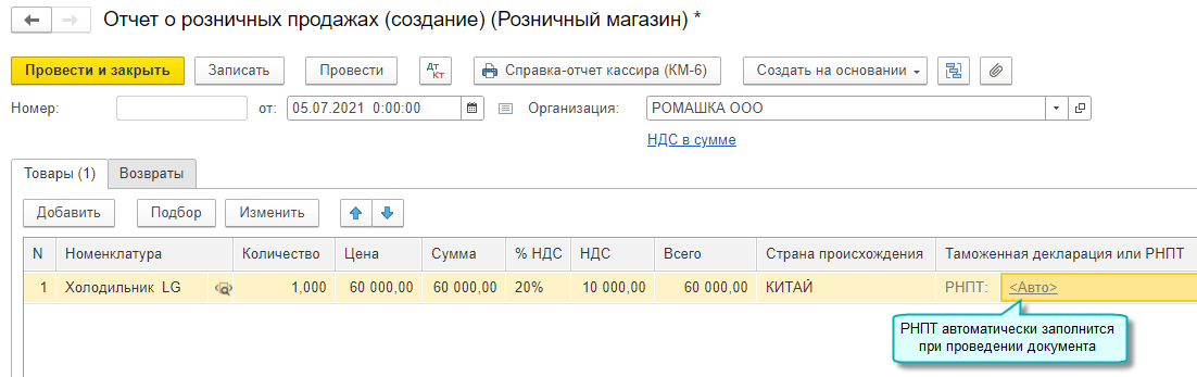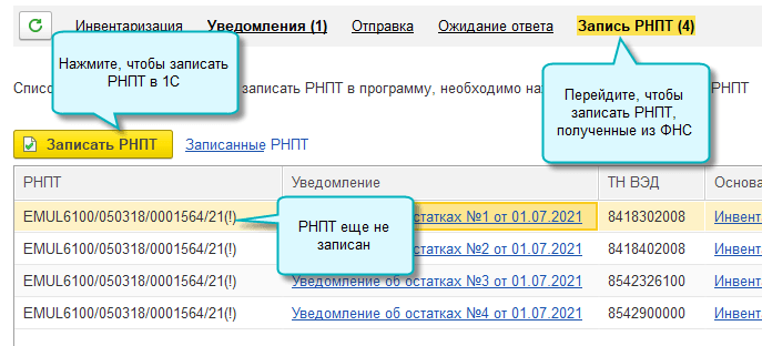 Дальнейшие получение и запись РНПТ выполняются также как при получении РНПТ на остатки товаров.