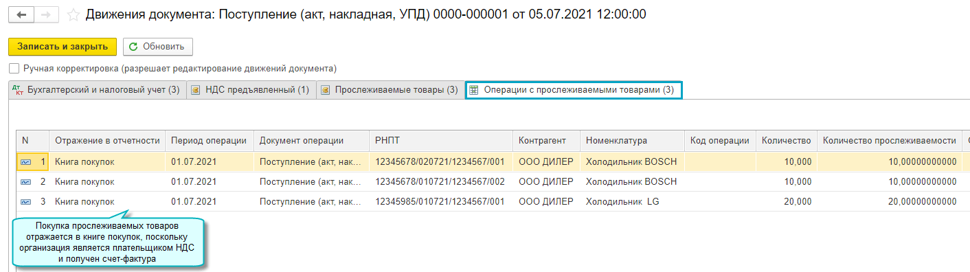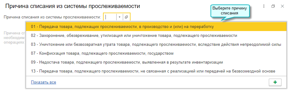 Добавлена возможность автоматического списания РНПТ во всех документах выбытия прослеживаемых товаров. Подбор РНПТ производится по методу ФИФО, первыми списываются товары, поставленные на учет первыми.