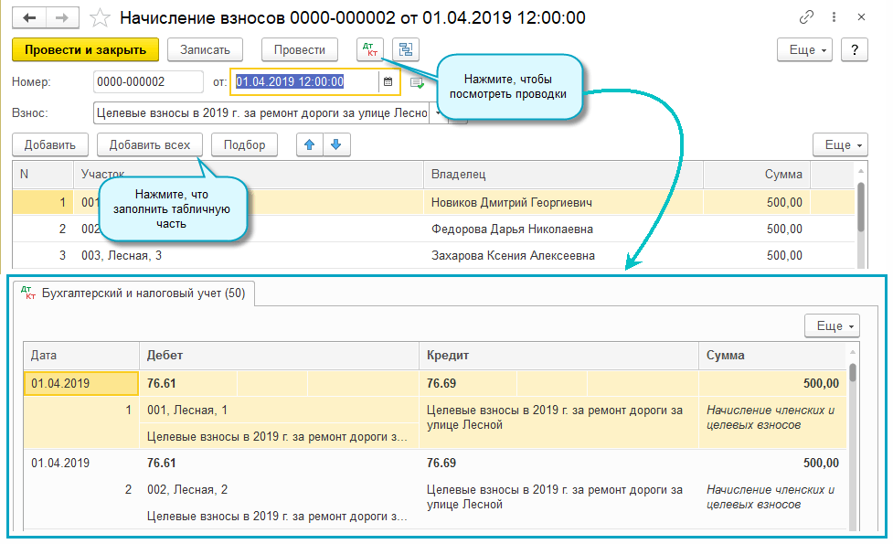 Начисление задолженности садоводов регистрируется специальными документами: