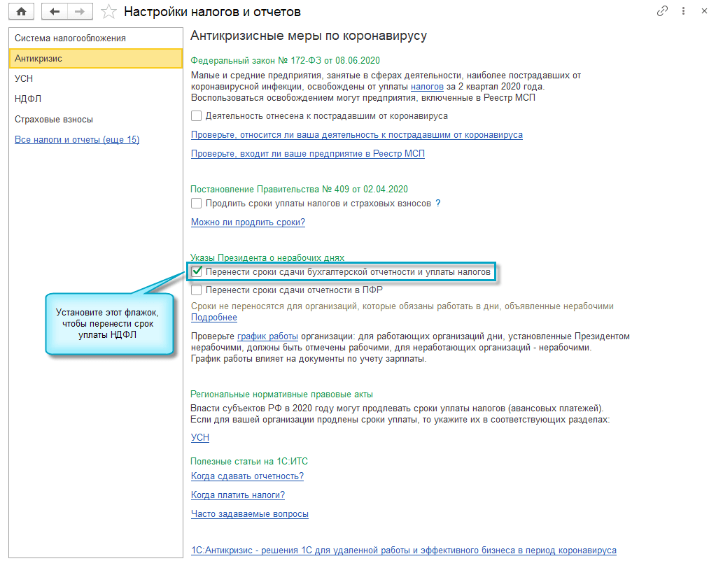 Если организация работала в периоды нерабочих дней в соответствии с Указами Президента, при определении срока уплаты НДФЛ для 6-НДФЛ нерабочие дни не учитываются.