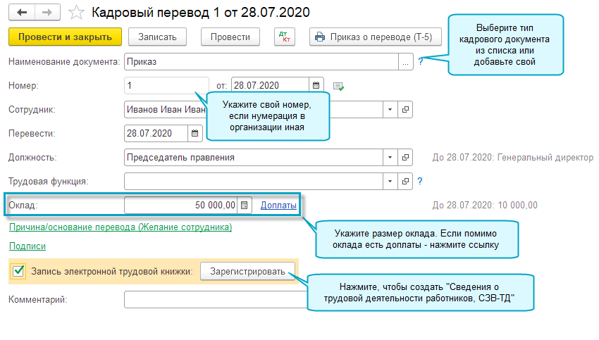 Изменен интерфейс кадровых документов Прием на работу, Кадровый перевод и Увольнение