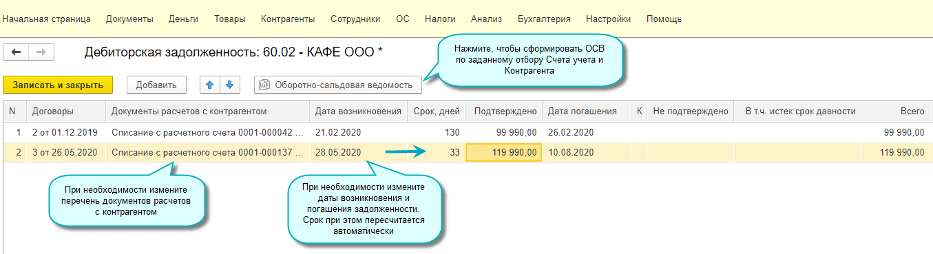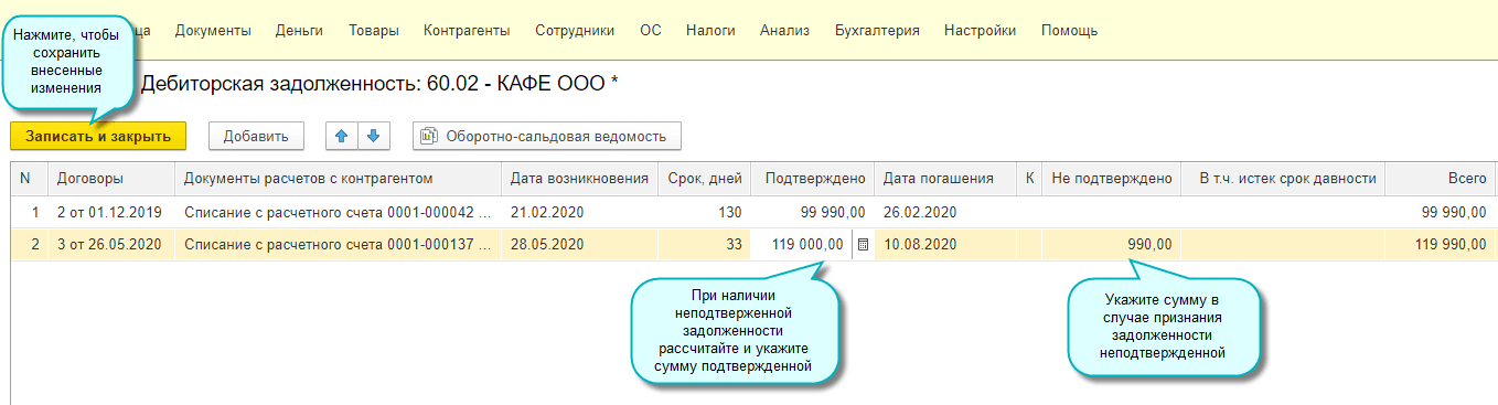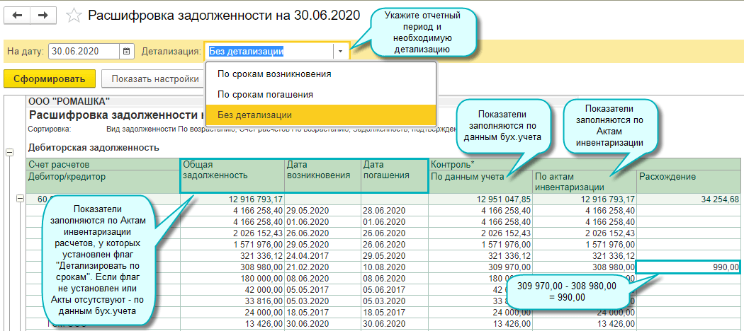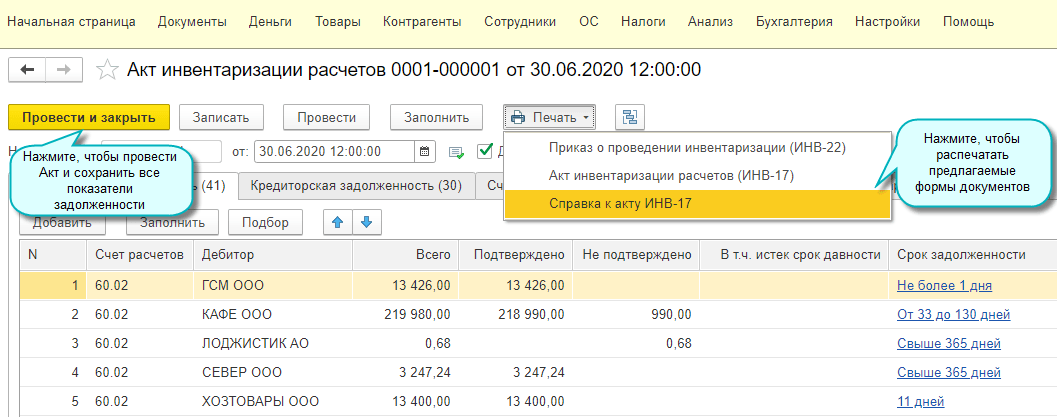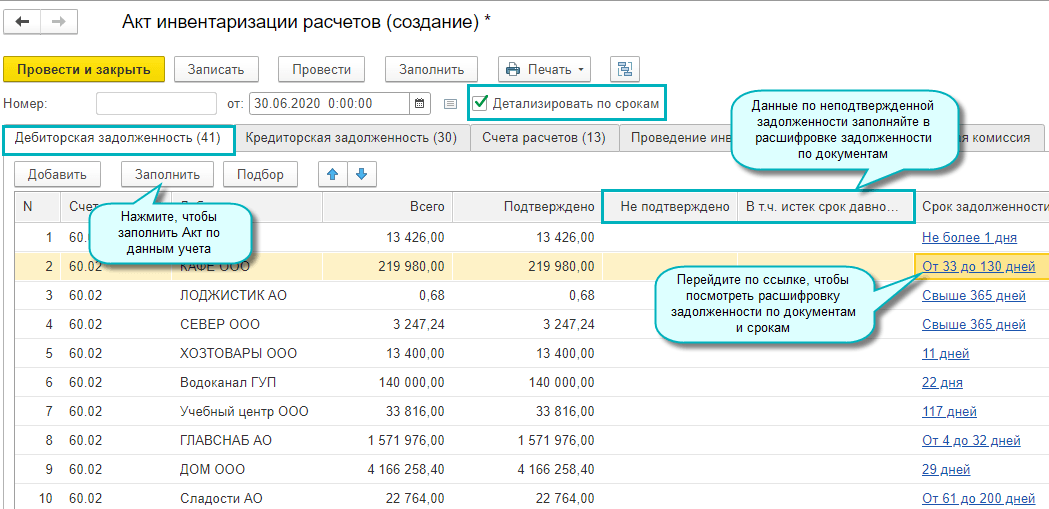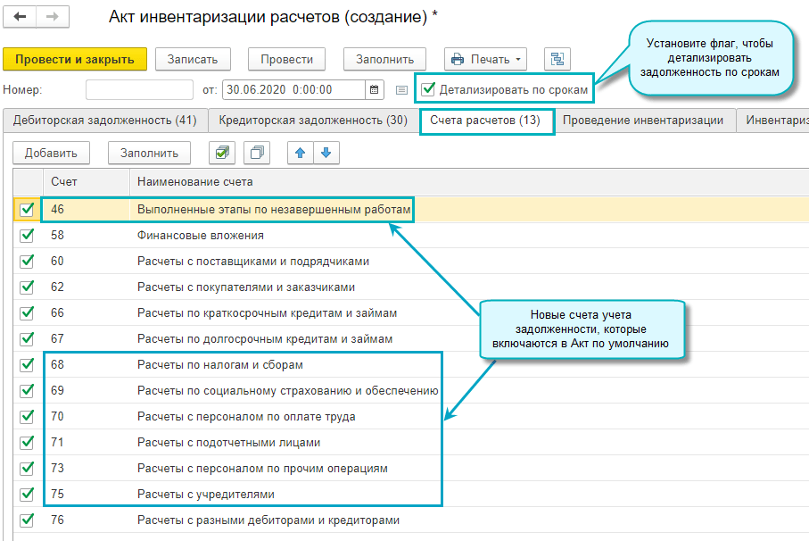 В Акт инвентаризации расчетов добавлены следующие возможности: