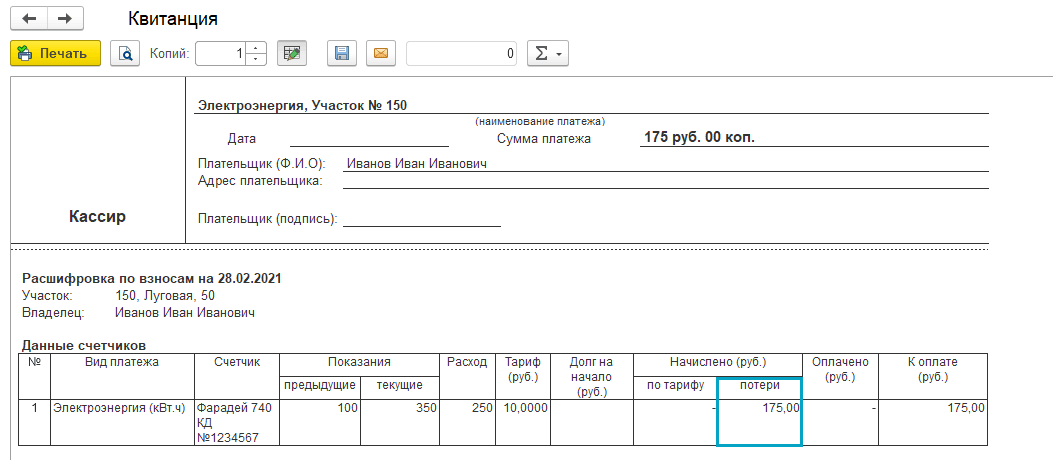Добавлена возможность рассчитывать потери без начисления взносов на электроэнергию. Расчет применяется, когда садоводы заключают договоры энергоснабжения напрямую с поставщиком электроэнергии. В СНТ не поступают взносы за потребленную электроэнергию. При этом садоводам могут начисляться потери, возникающие в связи с передачей электроэнергии по оборудованию СНТ.