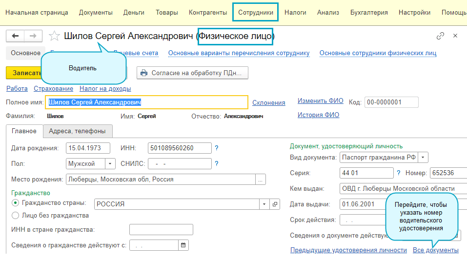 2. Регистрация номера водительского удостоверения