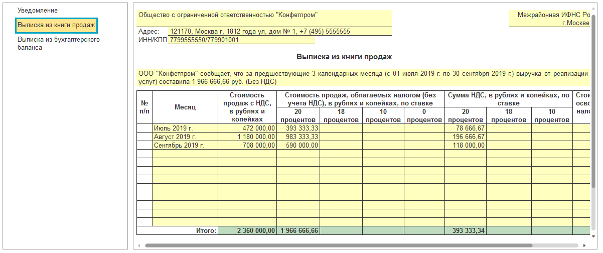 Теперь уведомление об освобождении от уплаты НДС заполняется автоматически на основании данных учета.