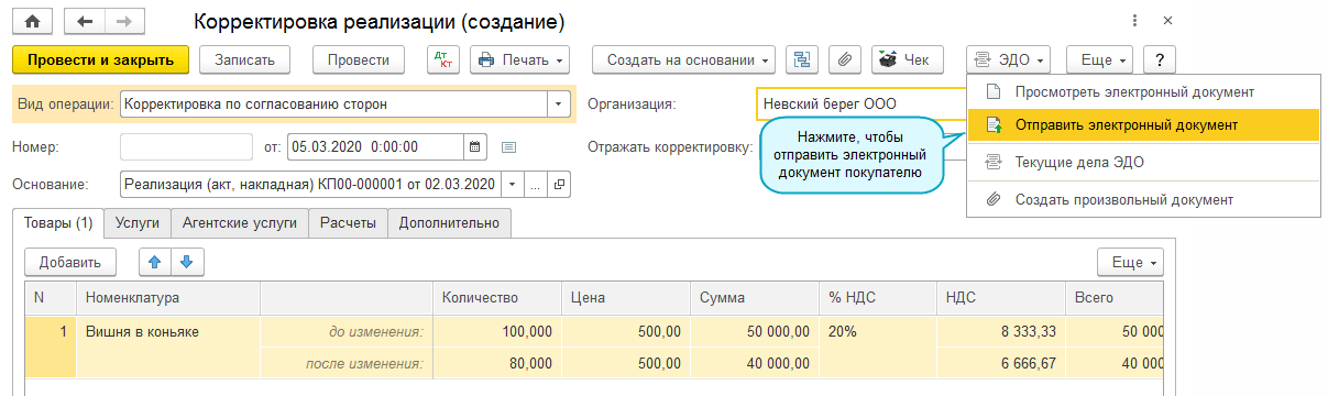 У покупателя корректировка отразится автоматически и документооборот завершится.