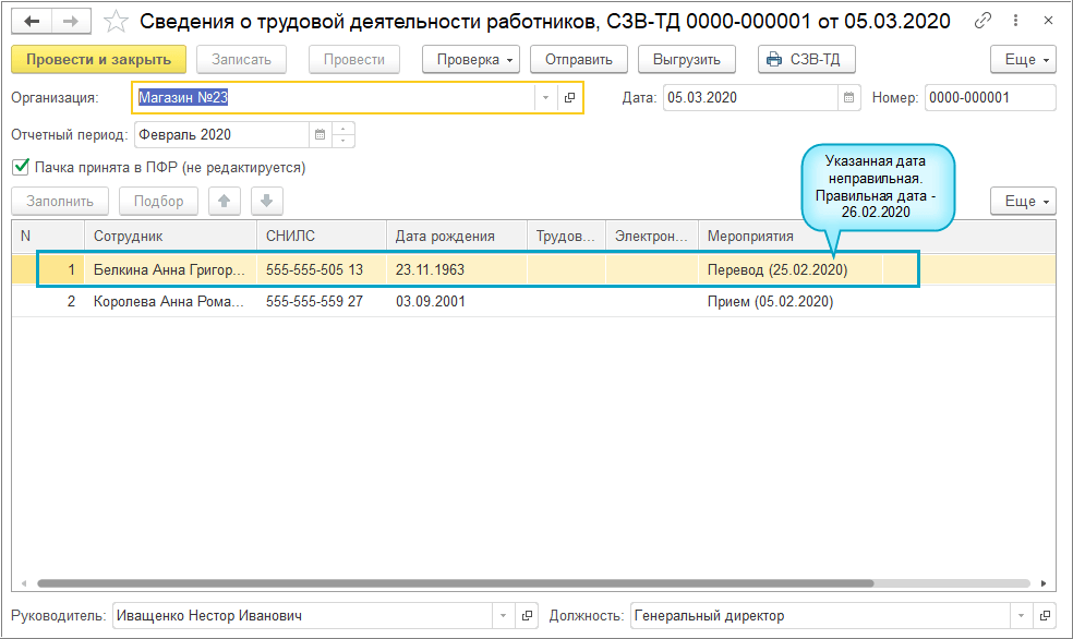 Форма СТД-Р заполняется только по кадровым мероприятиям, которые переданы в ПФР (СЗВ-ТД с флажком "Пачка принята в ПФР (не редактируется)").