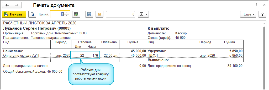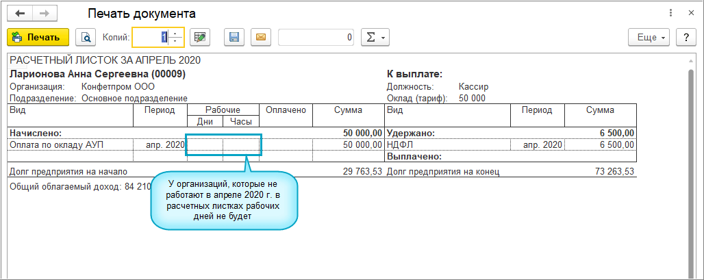 Организациям, которые продолжают работать в нерабочие дни с 30 марта по 30 апреля 2020 года необходимо настроить график работы организации для вывода отработаных дней в расчетных листках и табеле учета рабочего времени.