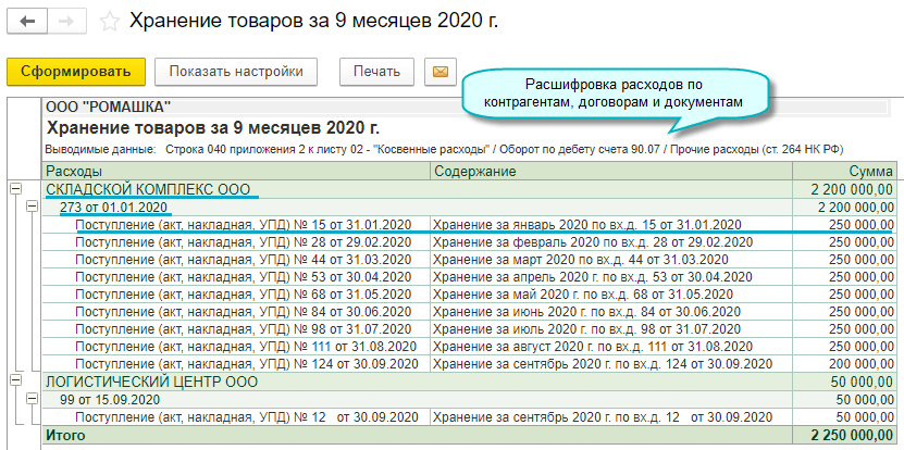 Расшифровать можно расходы по строкам Приложения №2 к Листу 02 декларации.