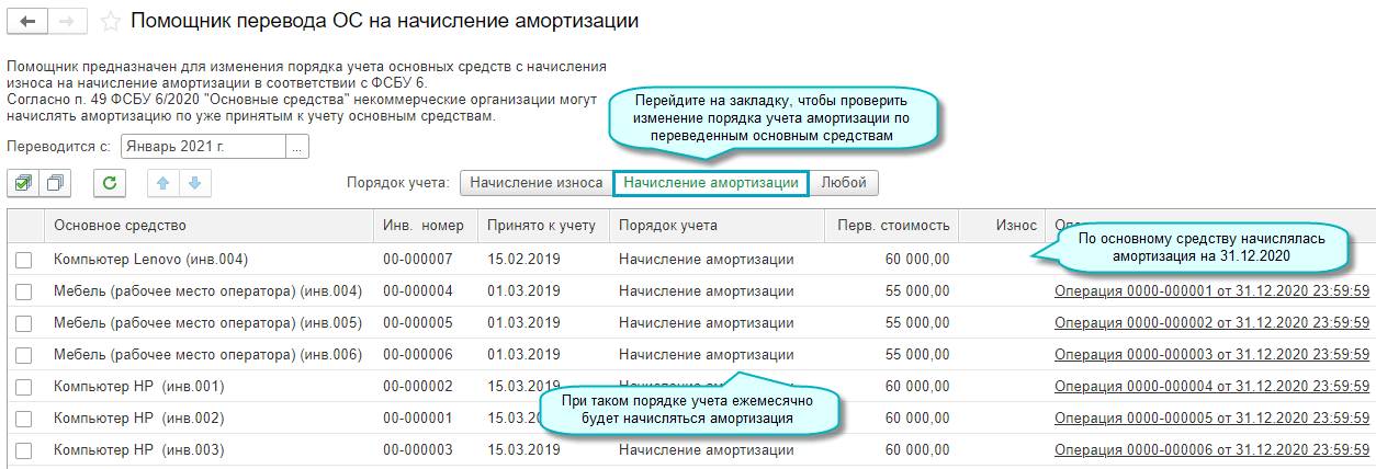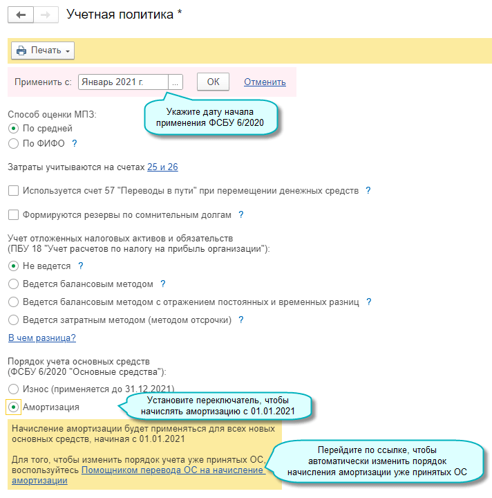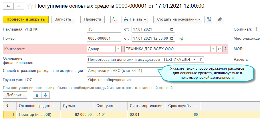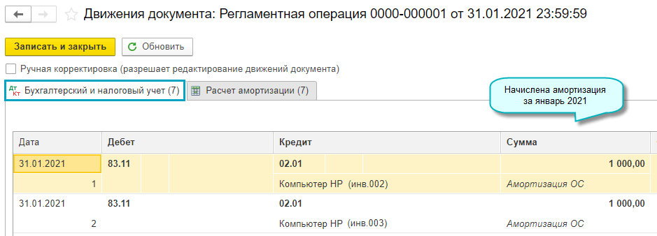 Добавлена возможность начисления амортизации основных средств, используемых в некоммерческой деятельности (п.4 ФСБУ 6/2020 "Основные средства"). Сумма амортизации уменьшает остаток по счету 83 "Добавочный капитал".