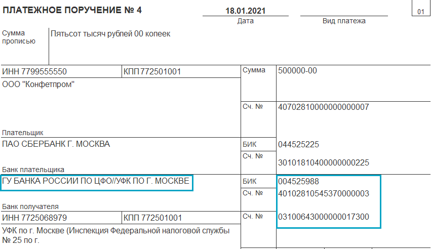 Банковские реквизиты для перечисления налогов, страховых взносов и других платежей налоговым органам приведены в Письме ФНС России от 08.10.2020 № КЧ-4-8/16504@. До 30.04.2021 платить налоговым органам можно также по реквизитам, действовавшим в 2020 году.