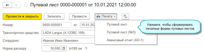 Добавлена возможность оформления путевого листа со сведениями о перевозке и модели автомобиля. Эти сведения должны указываться в путевом листе с 01.01.2021 по 01.01.2027 (Приказ Минтранса от 11.09.2020 № 368).