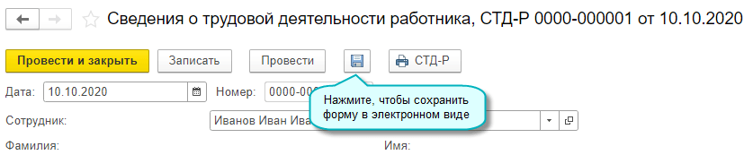 Добавлена возможность передачи сотруднику при увольнении формы СТД-Р в электронном виде по формату ПФР. Для оформления необходима усиленная квалифицированная электронная подпись (п.2.7 Приложения №3 к Приказу Минтруда России от 20.01.2020 № 23н).