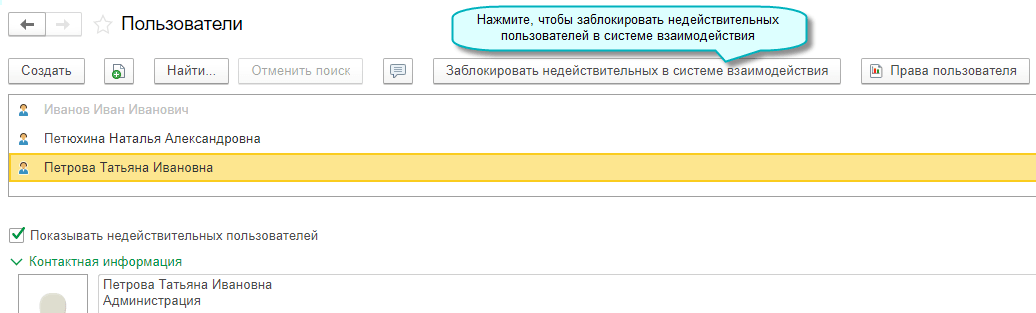 Добавлена возможность блокирования недействительных пользователей в системе взаимодействия.
