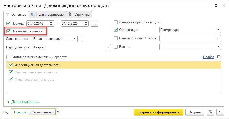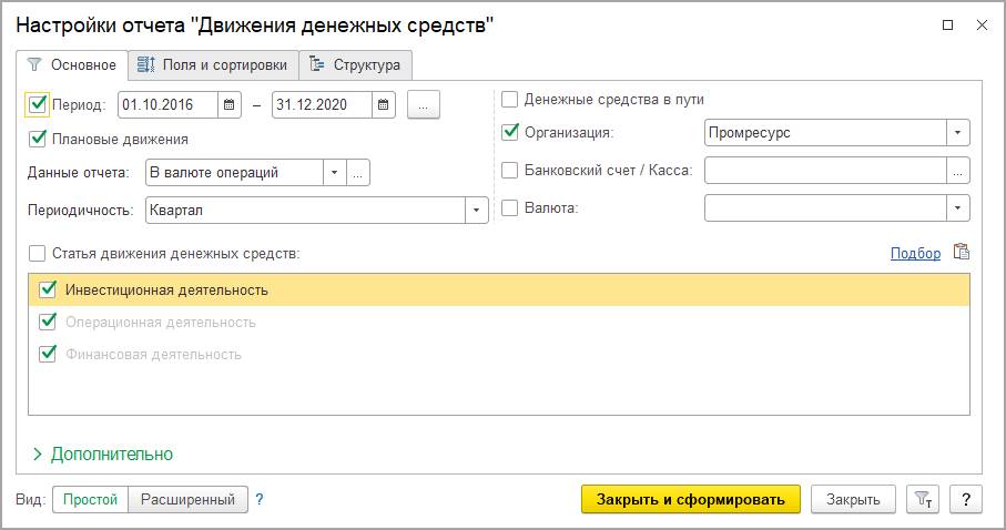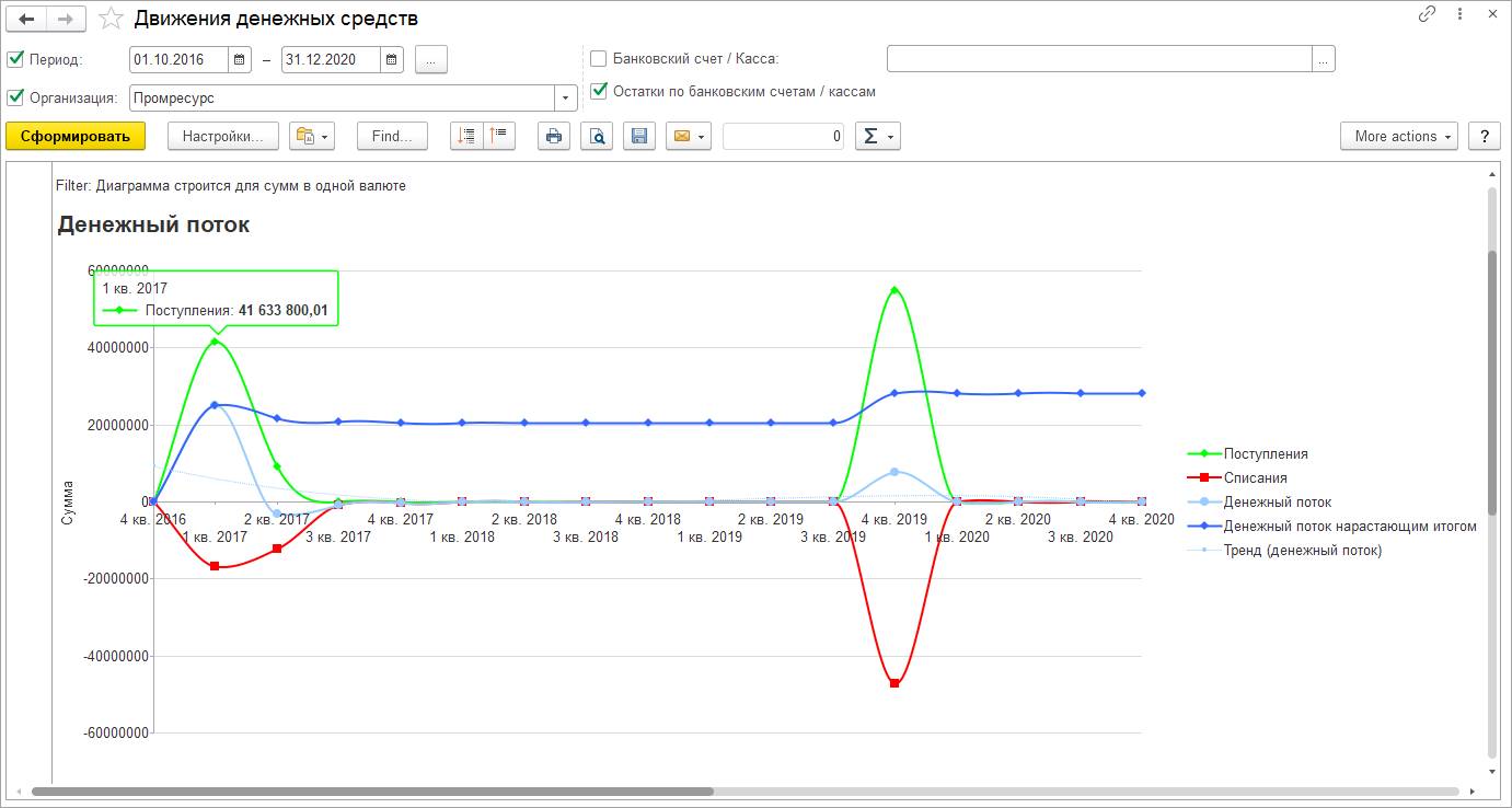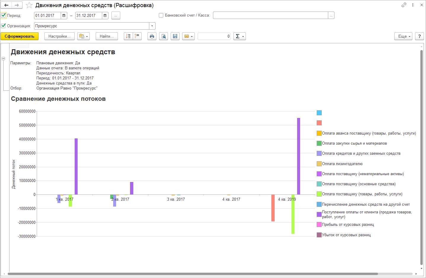 Данный отчет позволяет проводить анализ движений денежных средств.