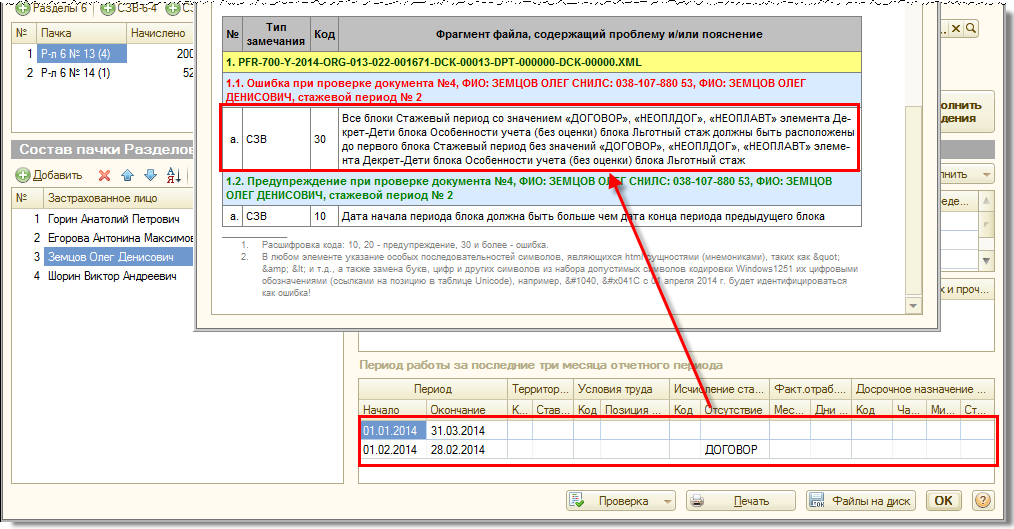 Однако проверочная программа ПФР CheckPfr в версии 1.1.2 от 08.04.2014 перестала «пропускать» такие записи, выдавая ошибку. В описании изменений CheckPfr (файл Version.txt в паке программы) сказано: