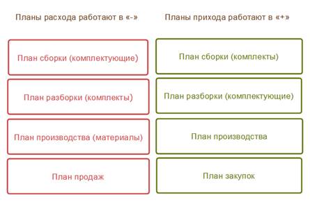 В сбалансированности планов добавлен вывод начального планируемого остатка и конечного планируемого остатка. Планы сборки/разборки разделены по комплектам и комплектующим.