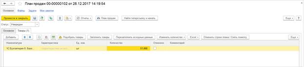 На декабрь введен план продаж на 51 штуку 1С:Бухгалтерия 8. Базовая версия.