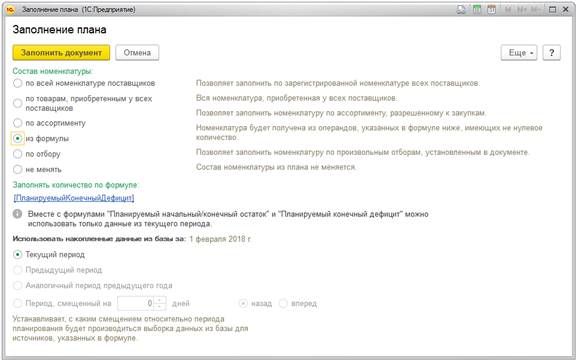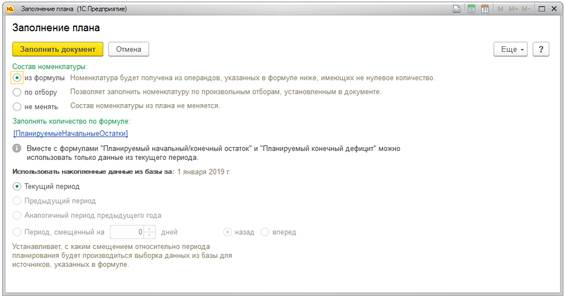 Если план остатков заполняется по формулам, то доступны 3 режима заполнения состава: