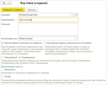 В разрезе сценария товарного планирования можно указать несколько видов плана с типом План остатков: