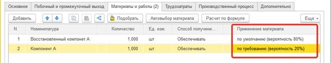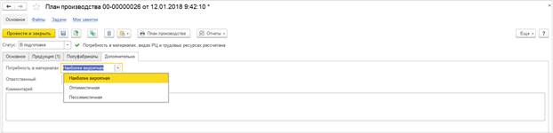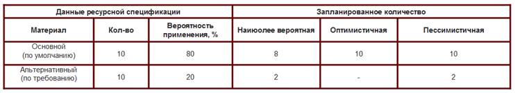Рассмотрим новую возможность на примере. Определенный материал требуется в производственном процессе не всегда, а только в 20% случаев (в 20% случаев что-то пошло не так и нам потребовался материал на замену). При «оптимистичной» стратегии этот материал не включится в расчет (мы считаем что все пойдет хорошо, замены не потребуются). При «наиболее вероятной» и «пессимистичной» оценке система запланирует потребление материалас учетом заданной вероятности.