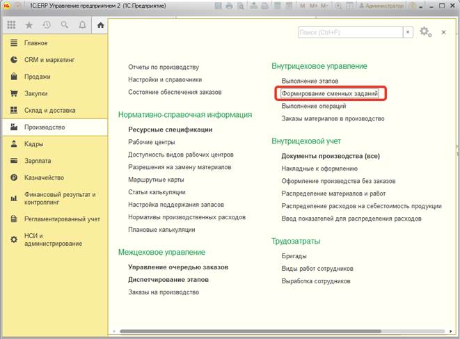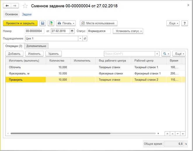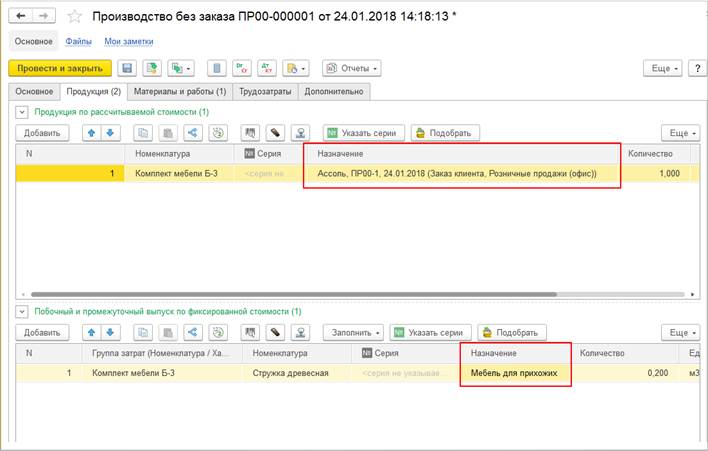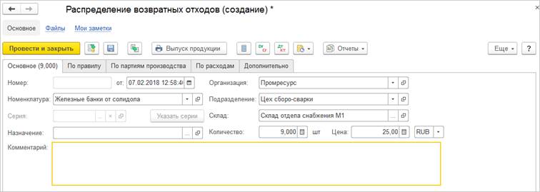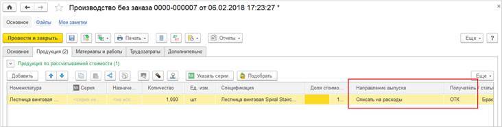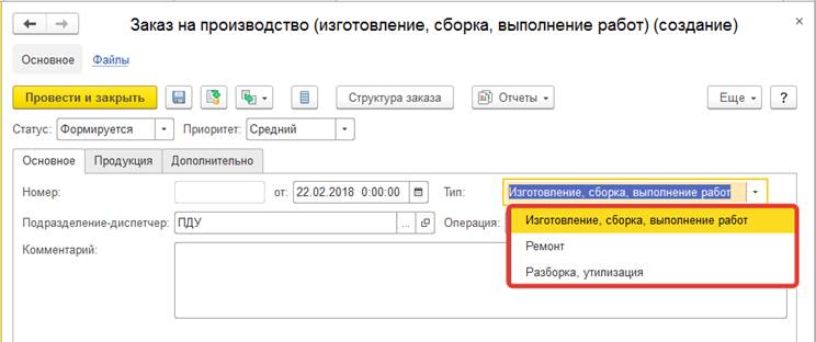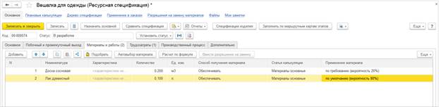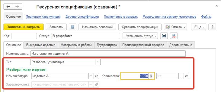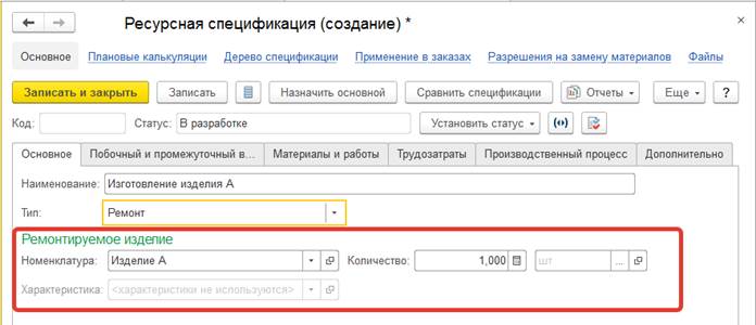 Тип производственного процесса определяет наименование и состав табличной части документа, ограничивает перечень доступных ресурсных спецификаций.