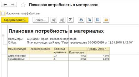 В плане производства 100 вешалок. Сформируем отчет Плановая потребность в материалах под этот план.