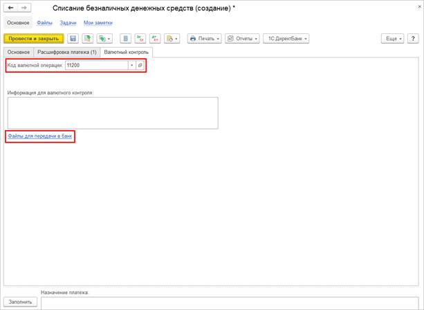 Реализована возможность прямого обмена (только в режиме 1С:ДиректБанк) с банком валютными операциями, включая выгрузку / загрузку документов: