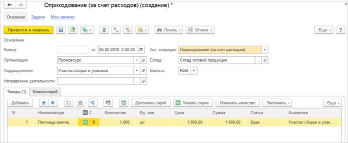 В регистре Прочие расходы заполняются ресурсы: