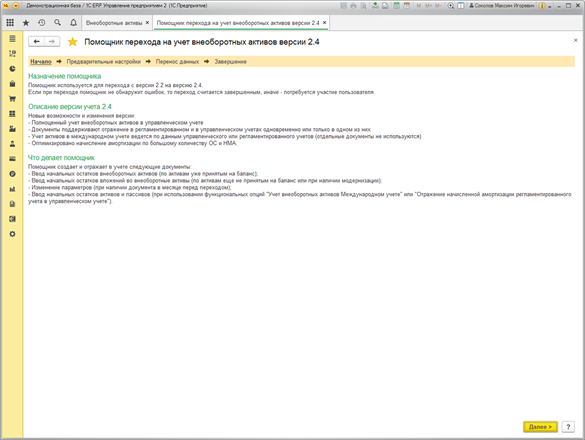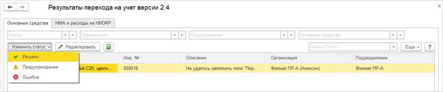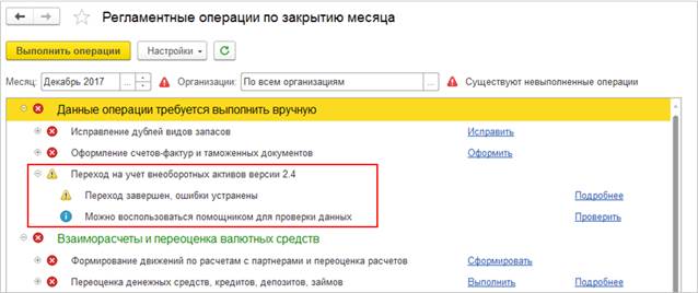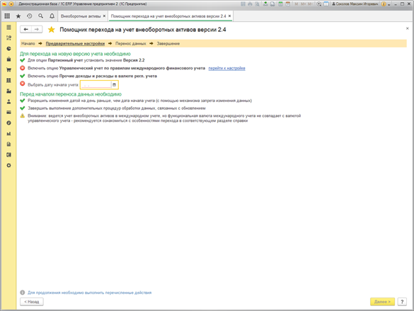 Параметры учета переносятся по данным регистров «как есть». Если по какой-то причине в регистрах с данными по ОС и НМА каких-то данных не хватает, то выполняется проверка и после переноса будет зарегистрирована ошибка.