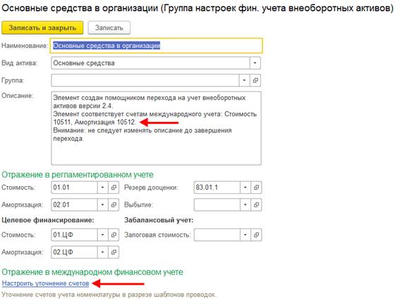 ГФУ для внеоборотных активов создаются с учетом счетов учета в МФУ – если в регламентированном учете счета совпадают, но в международном учете они разные, то будет создано несколько ГФУ, а в описании ГФУ будет информация об используемых счетах международного учета.
