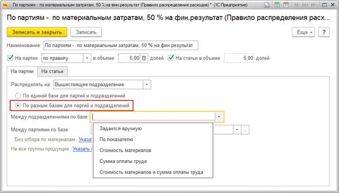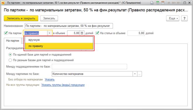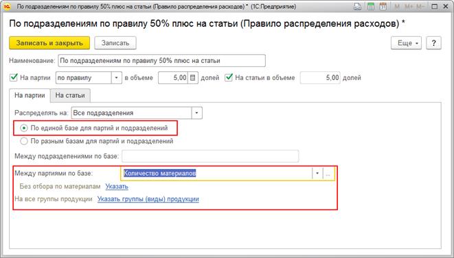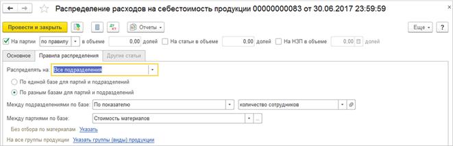 Правила распределения расходов используются в статьях расходов с распределением на производственные расходы: