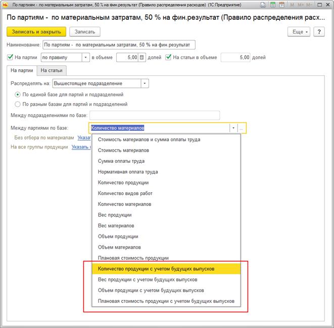 В качестве базы распределения берется запланированный показатель (стоимость, объем и т.д.) продукции по партии