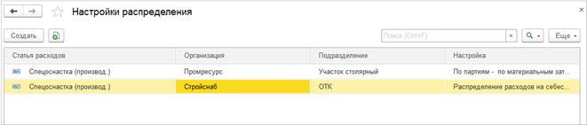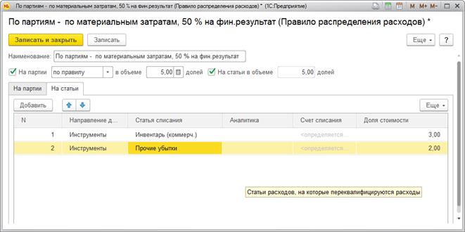 В тех случаях, когда статья расходов распределяется на другие статьи расходов, в правилах распределения нужно заполнить перечень статей расходов с указанием долей стоимости: