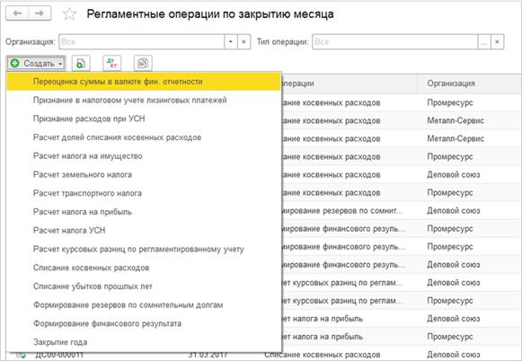 Возможен контекстный вызов по кнопке Подробнее из рабочего места Закрытие месяца.