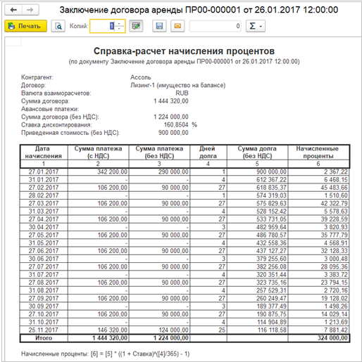 Теперь проценты начисляются на дату оплаты и на конец каждого месяца в течение срока аренды.