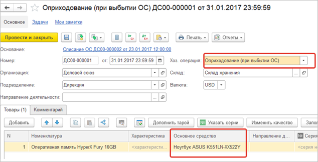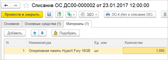 Регистратор «Списание ОС»